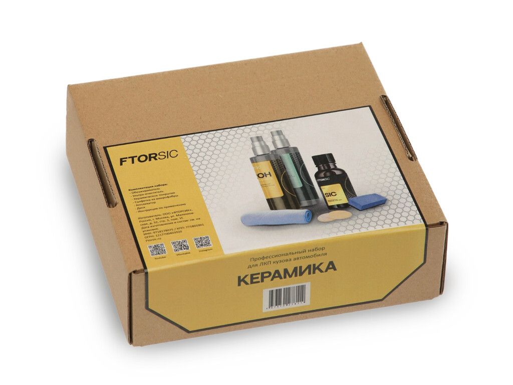 Комплект «Керамика» предназначен для полноценной обработки ЛКП и нанесения защитного покрытия на кузов. Состав: FTORSIC SIC – Керамическое покрытие для ЛКП FTORSIC ROH – Обезжириватель Активатор поверхностей (+ 1 в подарок) Аппликатор Замшевая салфетка Микрофибровое полотенце - 2 шт. Инструкция Условия доставки: Самовывоз. Режим работы: с 10.00. до 18.00 Пункты самовывоза: ул. Акжол, д. 24/2, оф. 317, 318, Астана. ТЦ "Арзан" ул. Айнакол, д. 26/1, оф. 24, 2 этаж, Астана. ТЦ Мереке Доставка службой Яндекс. Доставка. Стоимость доставки - по тарифам курьерской службы. Условия оплаты: Наличный расчет. Оплатить товар наличными средствами можно в отделениях компании. Безналичный расчет. Оплатить товар картой можно в отделениях нашей компании. Онлайн-платежом (для физ. лиц) Банковским переводом (для юр. лиц) Чтобы заказать Комплект Керамика FTORSIC, позвоните нам по телефону или оставьте заявку на нашем сайте.